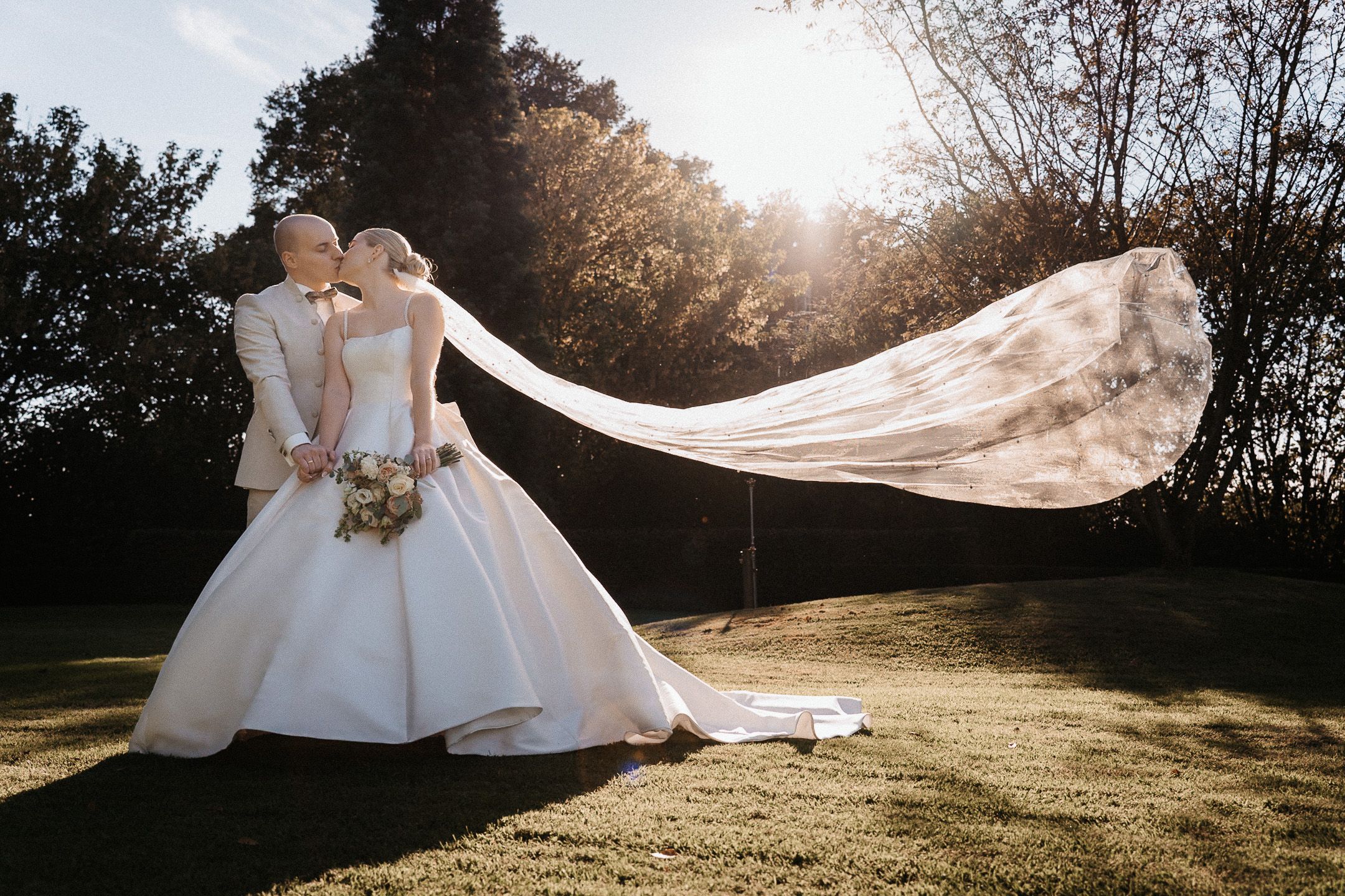 Ein kleiner Experten-Tipp: Denkt bei eurem Zeitplan unbedingt an die „Golden Hour“. Die Felder rund um das Landhaus bieten bei Sonnenuntergang ein Licht, das eure Portraits wie ein Gemälde wirken lässt.